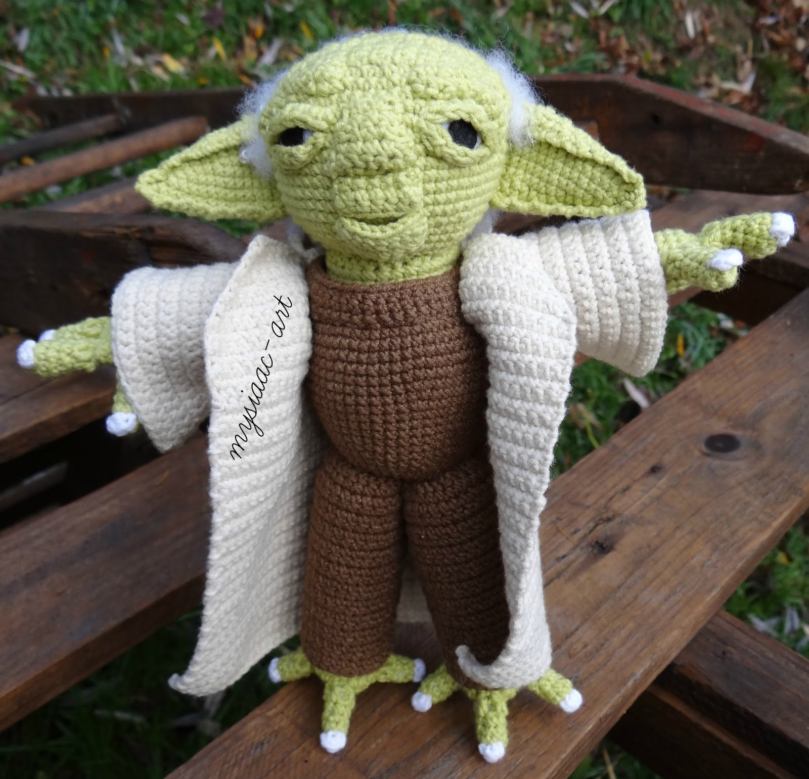 Do jego stworzenia wykorzystałam wzór ze strony https://shedko247.wordpress.com/2012/02/06/yoda/ Jedyny tak efektowny projekt jaki udało mi się wygrzebać w czeluściach internetowych ;) Nie mogłam wykorzystać tych ptostszych bez zmarszczek i tych wszystkich szczegółów. Były zbyt proste ;)